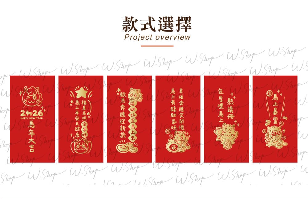 上一個商品 下一個商品 客製-馬年限定款紅包袋 NT$1 💖2026-客製馬年紅包袋💖 ☺️馬年限定款,客製/訂製企業紅包袋 ✍🏻親筆手寫,不怕撞字 ✅可選購現款 👉請看完內頁說明,都很重要,您的疑問解答都在下面▼ 款式 請選取一個選項數量=報價請先line聯絡客服,我們會提供報價清除 客製-馬年限定款紅包袋 數量 加入購物車 貨號: 不提供 分類: 過年紅包袋, 紅包袋, 設計/客製服務 社群分享 描述 額外資訊 評價 (0) 描述 2026客製馬年紅包袋架上現款圖案接受客製公司/企業/專屬紅包袋贈送禮贈品好體面~圖案下方皆可加入您的LOGO或是要獨家手寫字 寫公司名我們都有服務喲!這一款燙金呈現,大方、簡約又體面哦! W.Shop提供多款讓您選擇歡迎繼續往下看完介紹喲~ | 常見問題 | Q1: 可以開立發票嗎?目前只有開收據服務喲!有需要的寶貝們請記得在訂單內備註「統一編號」、「公司行號」收據會隨貨附給您*我們沒有補寄服務,下單前請確認~謝謝— 【注意事項】手工製作,會有些許黑點、燙金粉、皺折皆為正常現象,完美主義者,請勿下單。購買前,請先確認好尺寸大小、款式是否適合,恕不接受因尺寸不合、款式買錯而退貨。客製化商品不適用於七天鑑賞期,除商品印製重大瑕疵外,恕不提供退/換貨。客製設計版權歸W.Shop頡曦工作室所有,故購買無提供電子圖片檔與原檔。不接受急單,急單客製化印製時間,物流配送,請自行承擔風險,若有時間上的收到請斟酌購買。電腦螢幕色或手機螢幕色,不代表成品顏色(以實際收到商品為主)10%內色差為合理範圍。顏色僅供參考,請以收到實際產品為主。本網站設計與圖片皆屬頡曦工作室所有,盜圖必究。 額外資訊 款式 數量=報價, 請先line聯絡客服,我們會提供報價 商品評價 目前沒有評價。 只有註冊並且購買過商品的顧客才能撰寫評價。 相關商品 紅包袋, 過年紅包袋, 設計/客製服務, 人氣商品客製-姓氏壓歲錢(1包1個姓氏) NT$49 選擇規格 紅包袋, 過年紅包袋萬用新年紅包袋(1包6入) NT$59 選擇規格 紅包袋, 過年紅包袋端午節/中秋節/三節禮金紅包袋 NT$9 – NT$49 選擇規格